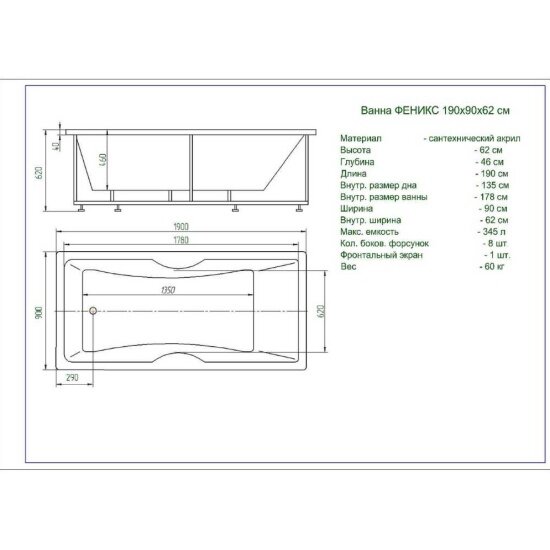 | Подробная комплектация | ванна, каркас, система слива/перелива |