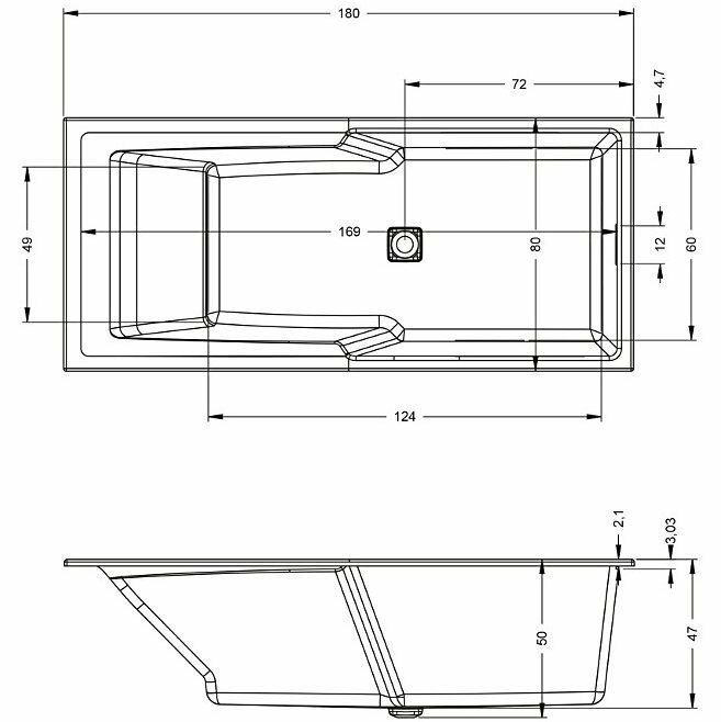 Ванна акриловая Riho STILL SHOWER 180x80 BR0500500000000