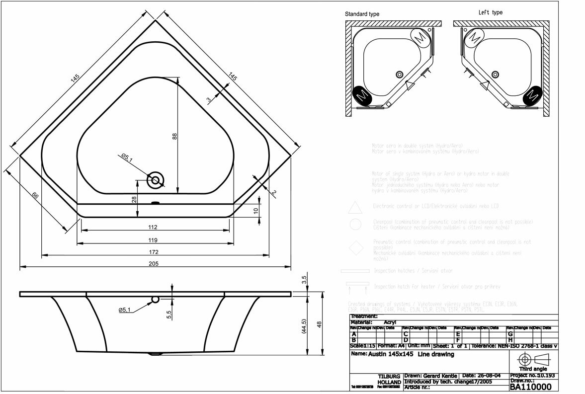Акриловая ванна RIHO Austin 145x145 B005001005 без гидромассажа интересное: