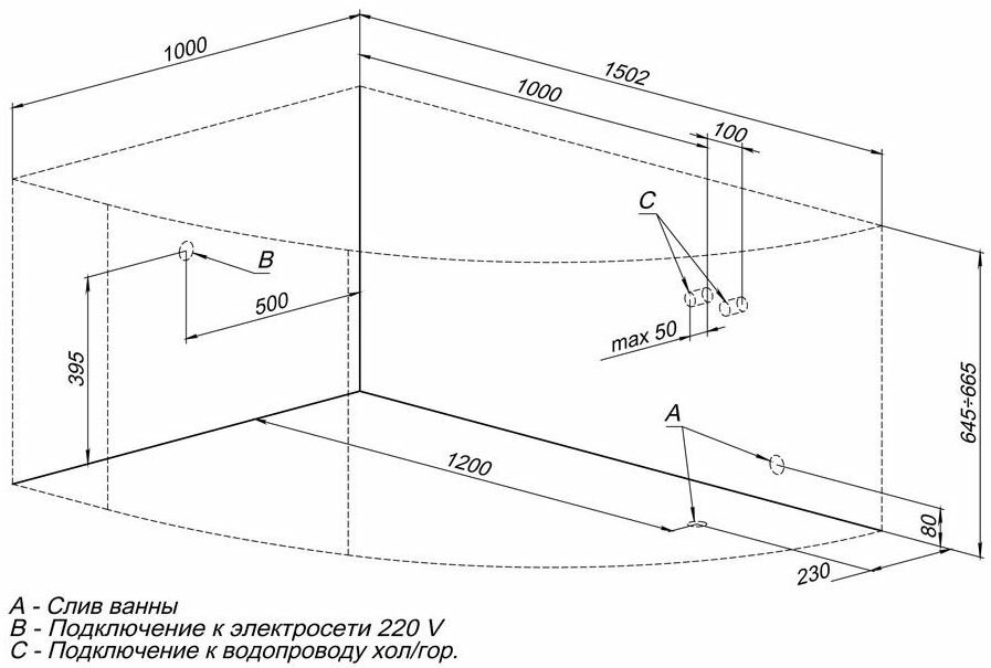 | Размеры (ДхШхВ) | 150х100х50 см |