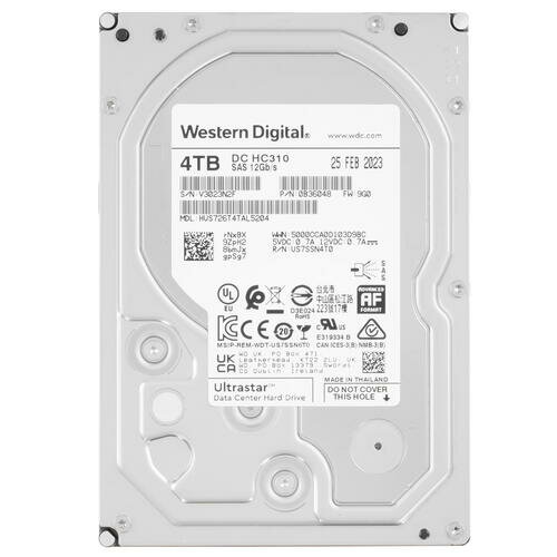 4Tb WD Ultrastar DC HC310 (hus726t4tal5204) sas 12Gb/s, 7200 rpm, 256mb buffer, 512E SE, 3.5" [0b3