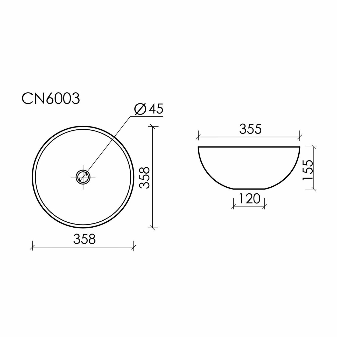 Умывальник чаша накладная круглая (цвет Белый Матовый) Element 358*358*155мм CN6003