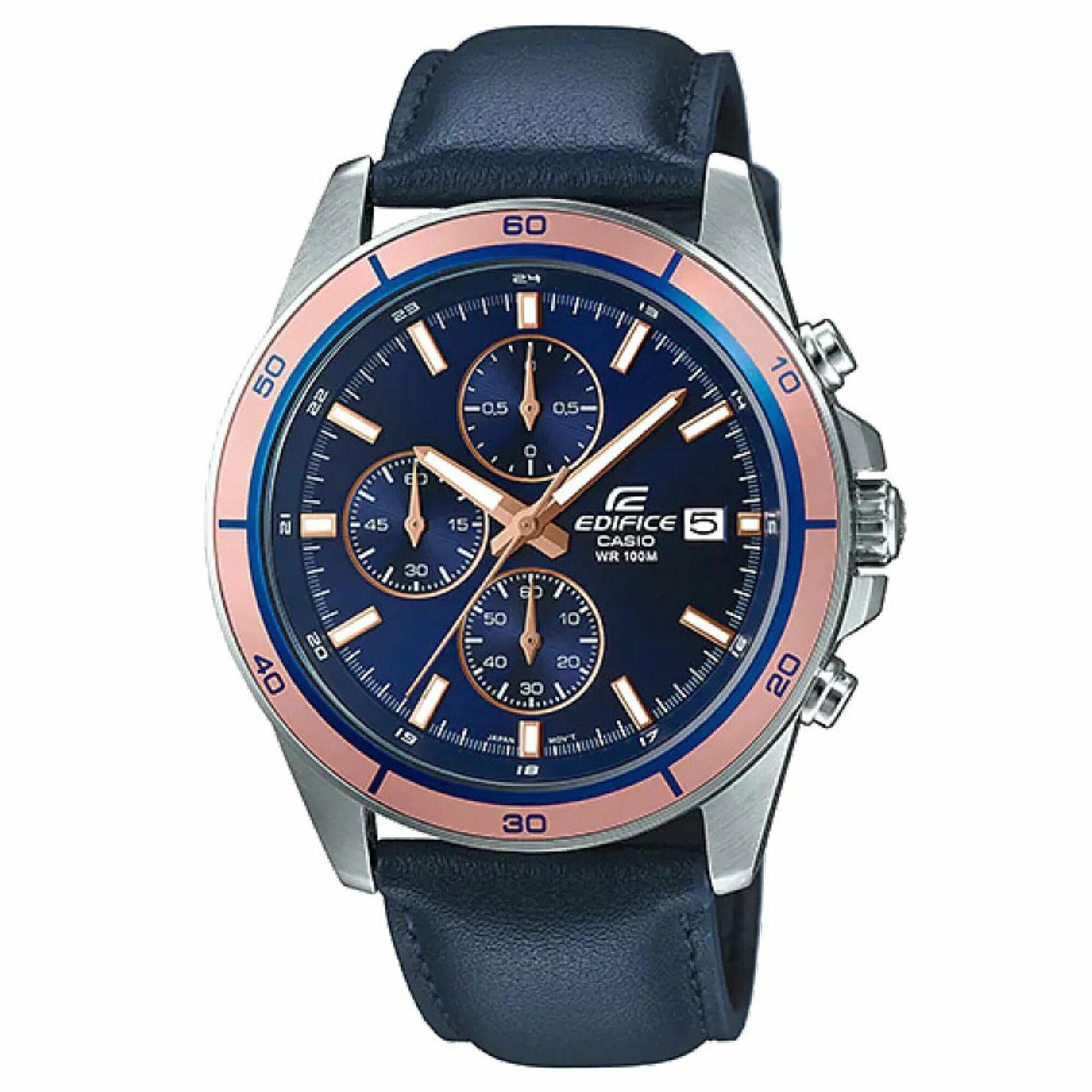 Купить Японские кварцевые часы Casio Edifice EFR-526L-2A на кожанном браслете, с водозащитой 10 бар и международной гарантией от производителя