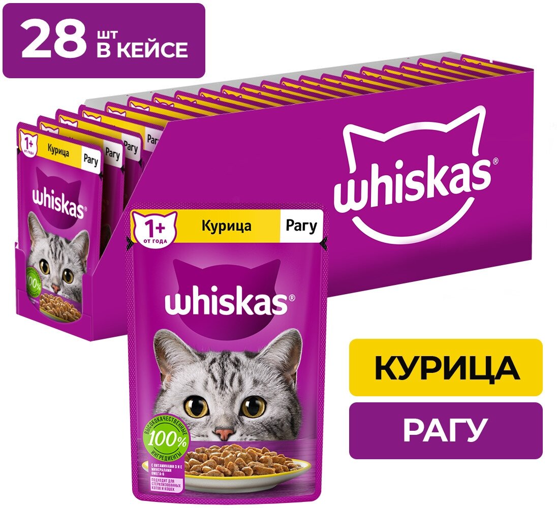 Влажный корм WHISKAS® для кошек, рагу с курицей, 75г*28шт