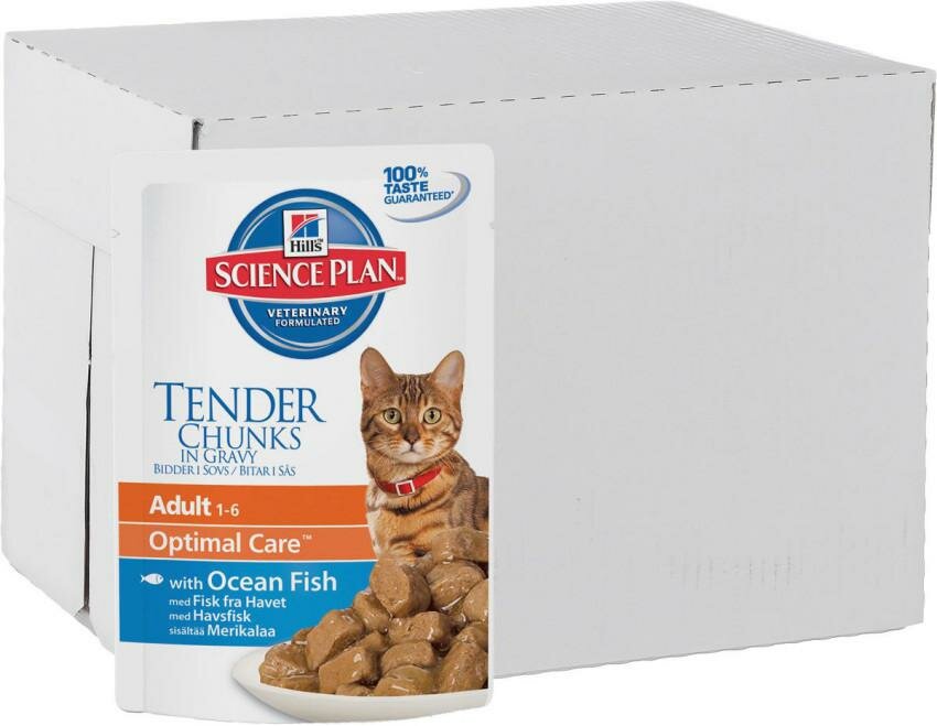 Корм HILLS Hill's Science Plan Adult Optimal Care with Ocean Fish для взрослых кошек, кусочки в соусе с океанической рыбой, 12шт.* 85г