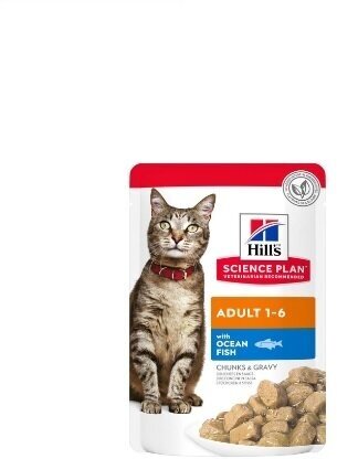 Влажный корм Hill's Science Plan для взрослых кошек для поддержания жизненной энергии и иммунитета, пауч с океанической рыбой в соусе, 12шт х 85г