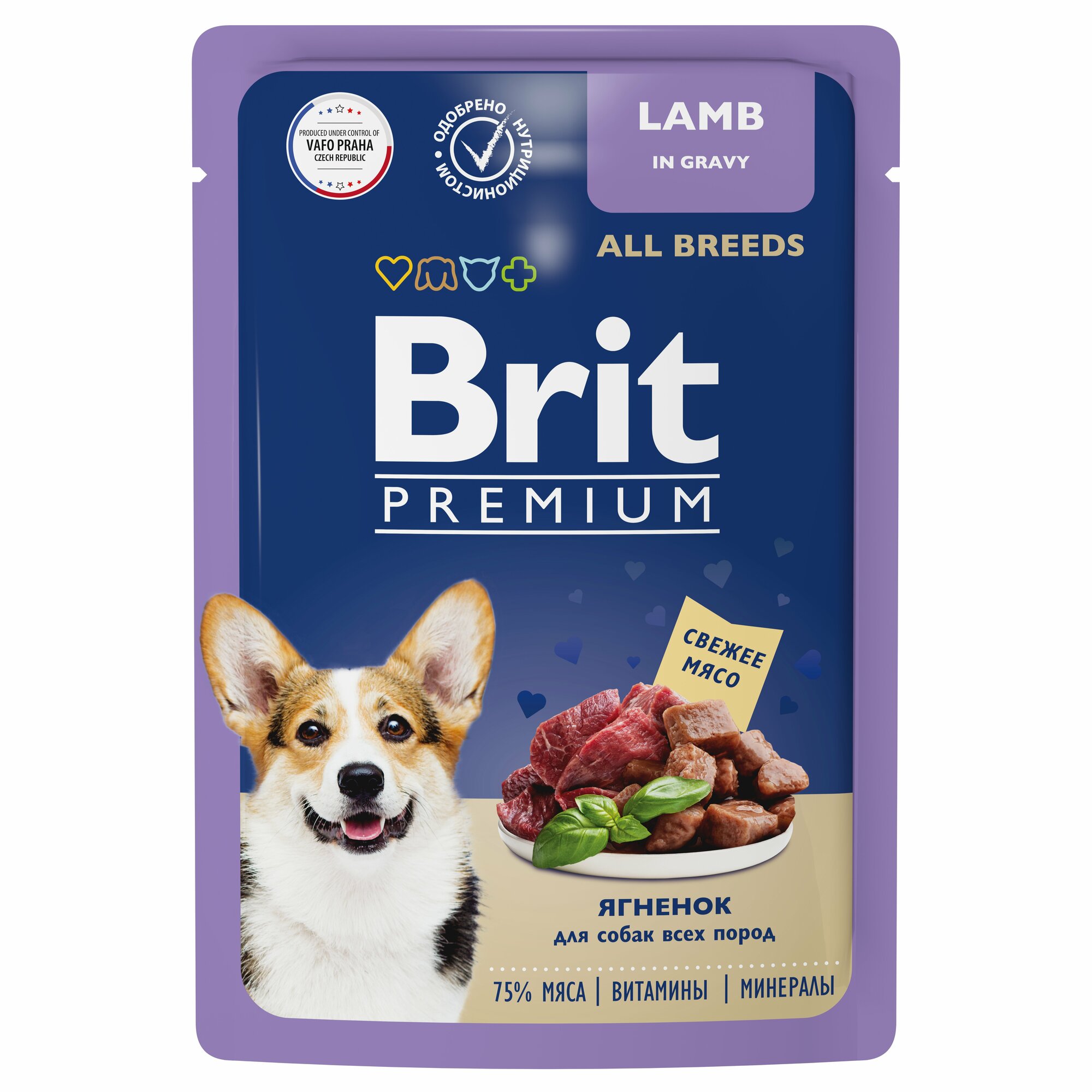 Влажный корм для собак. Пауч для взрослых собак всех пород, Ягнёнок в соусе, 85гр, 14 шт BRIT PREMIUM