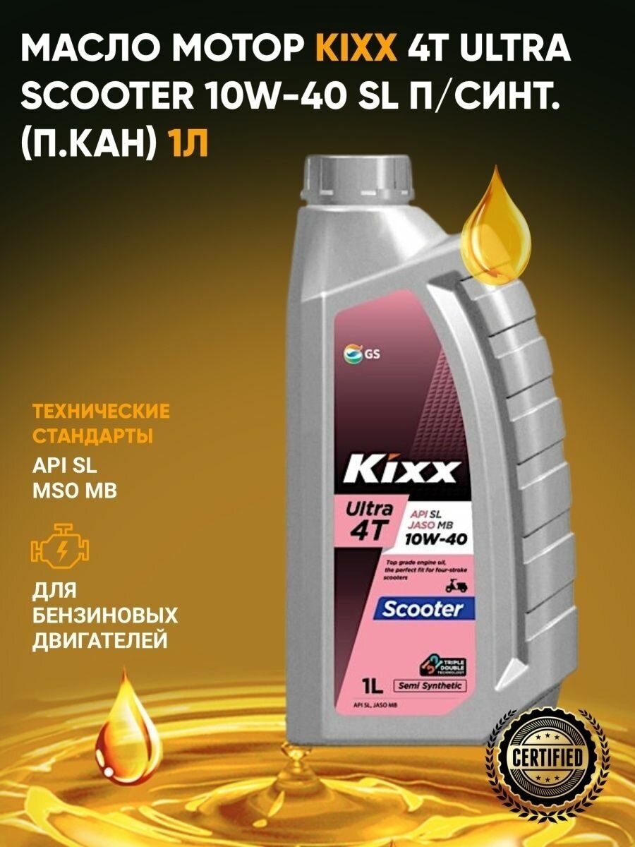 Масло моторное KIXX Ultra 4T Scooter 10w-40 1л. API SL, JASO MB