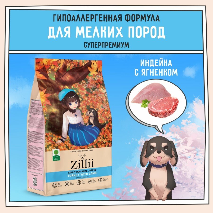 ZILLII (Зилли) Adult Dog Small Breed корм сухой для взрослых собак мелких пород 800 г Индейка с Ягнёнком, гипоаллергенный