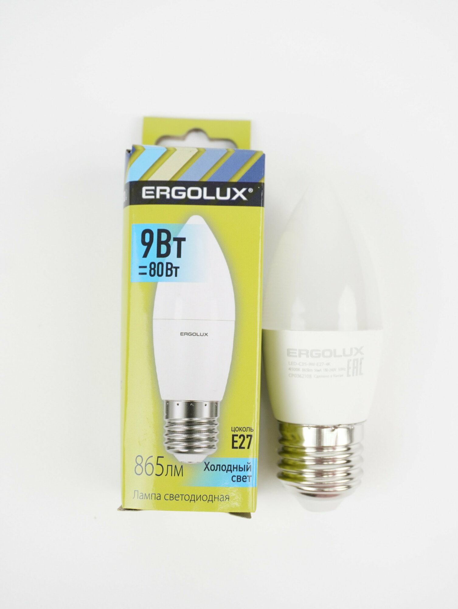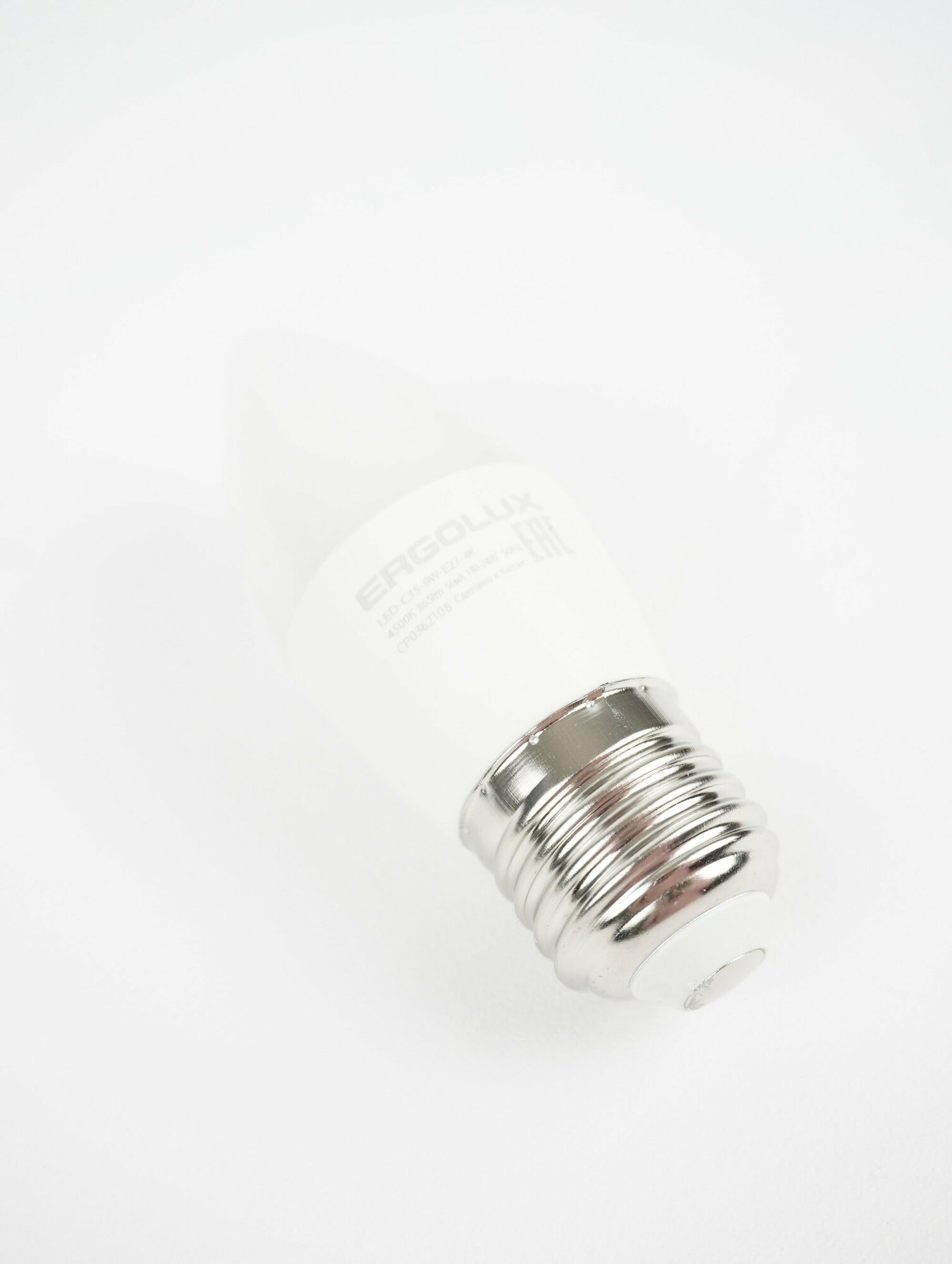 Лампочка светодиодная C35 Ergolux, 9Вт 220В, цоколь Е27, нейтральный свет 4500К, 1 шт.