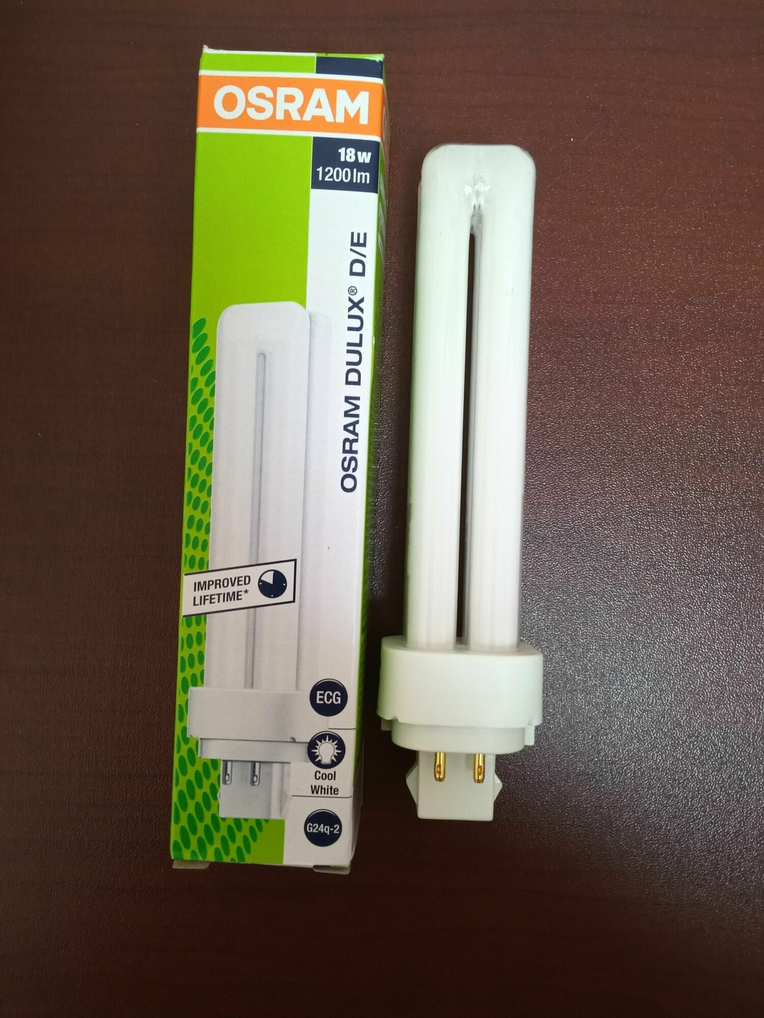 Лампа люминесцентная Osram DULUX D/E 18W/21-840 G24q-2 холодный белый 4000К, упаковка 1шт