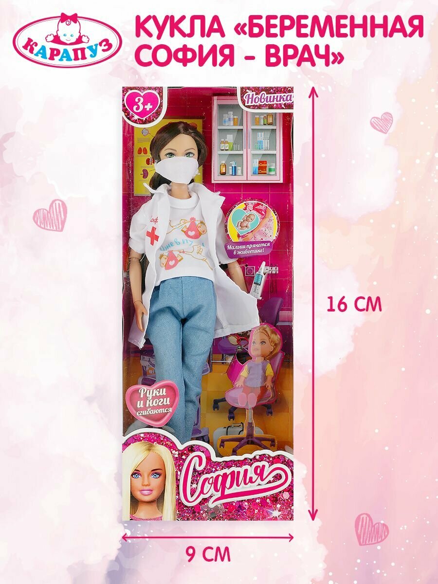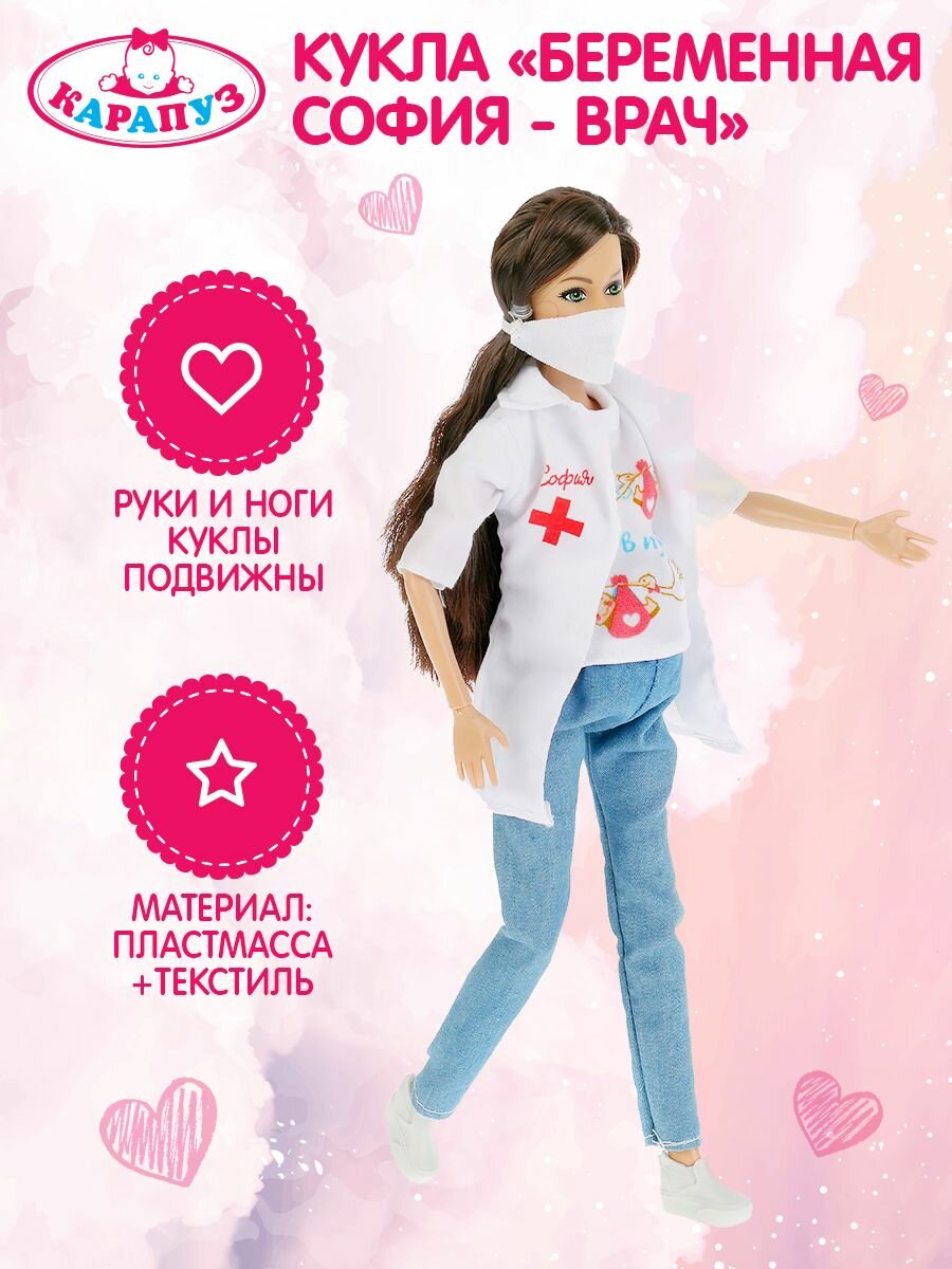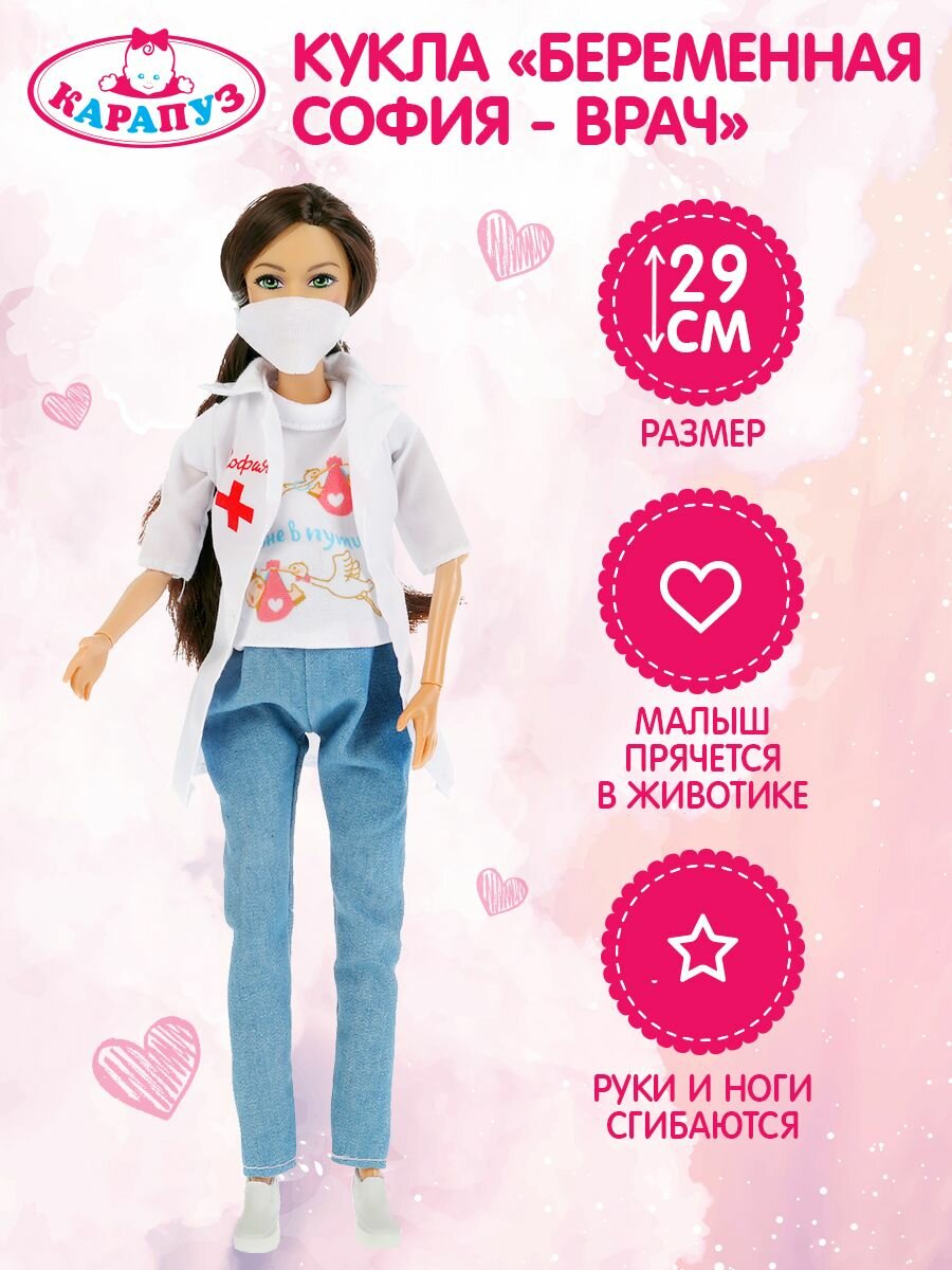 Кукла 29 см. София беременная врач, руки и ноги сгибаются Карапуз 66001JB1-D1-S-BB