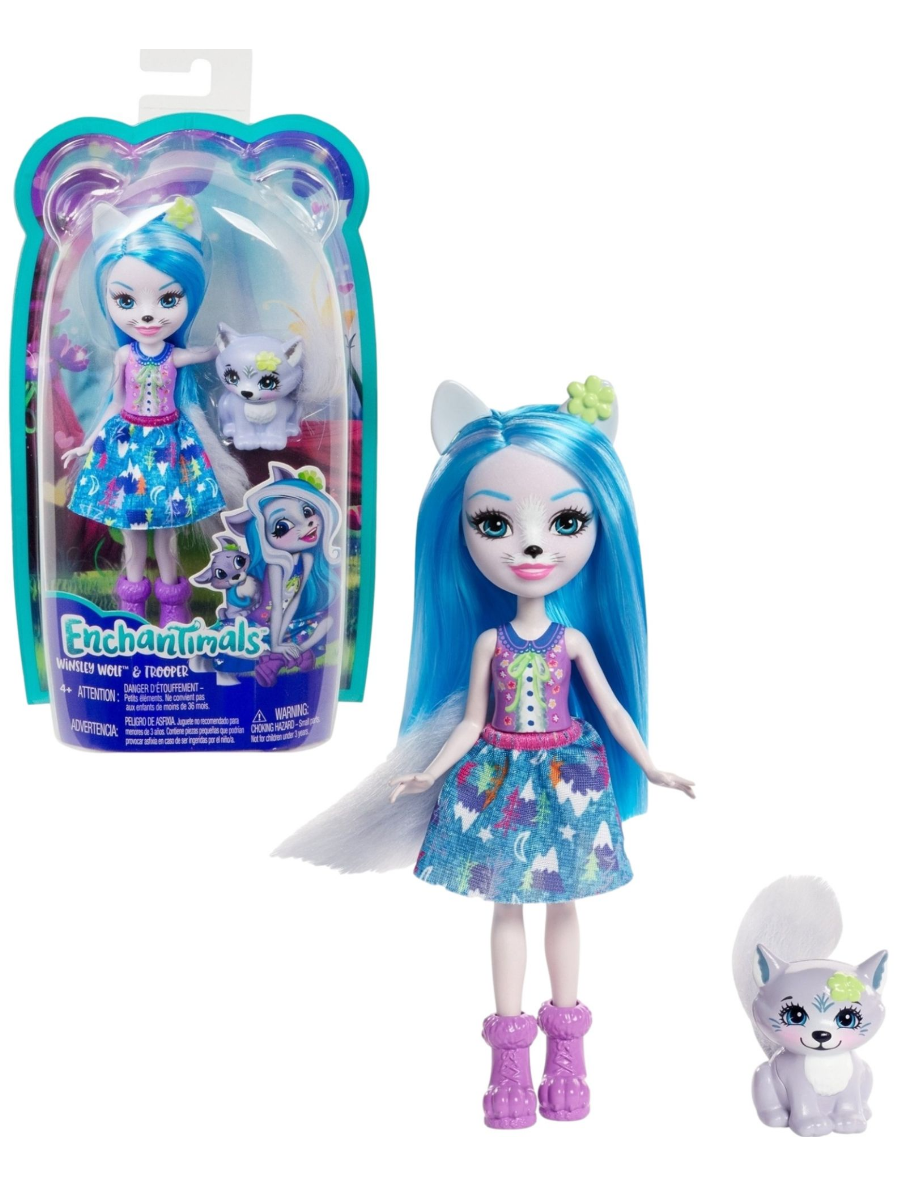 Купить Кукла Enchantimals с питомцем FNH22 размер платья: 100-110 см Уинсли Вульф и Троппер
