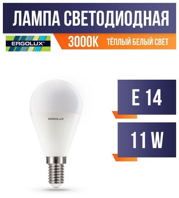 Лампочка ERGOLUX LED-G45-11W-E14-3K Шар 11 Вт, E14, белый