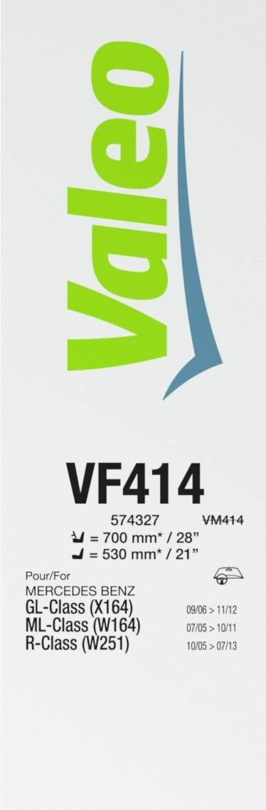 Купить Комплект бескаркасных стеклоочистителей Valeo Silencio Flat VF414 для Mercedes-Benz GL [X164] 2006-2012, ML [W164] 2005-2011