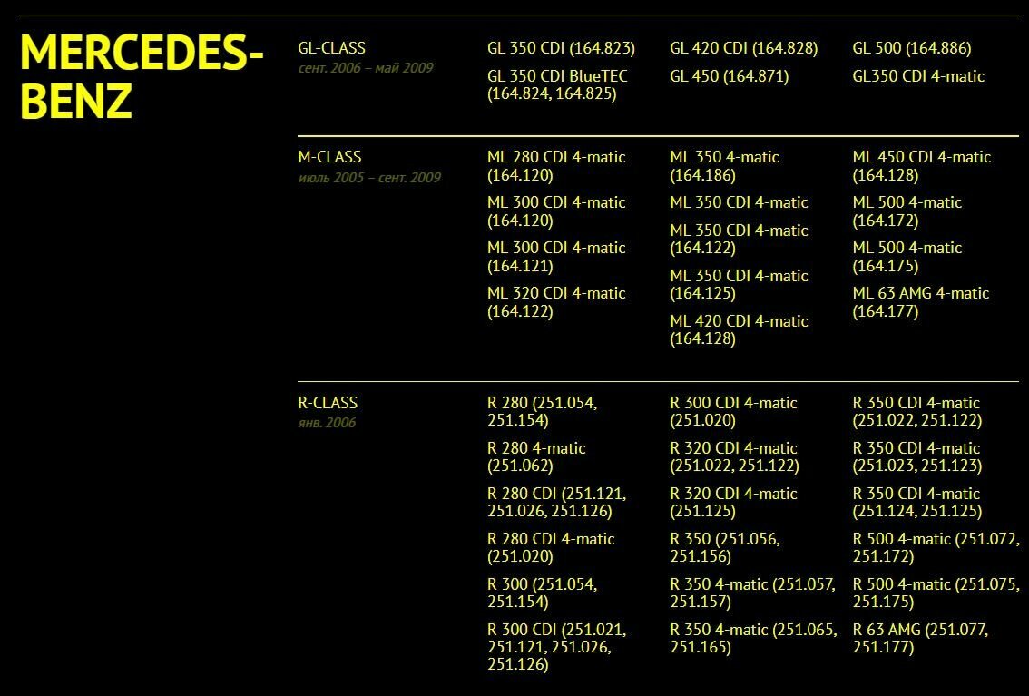 | Модель автомобиля | Mercedes-Benz GL-class / Mercedes-Benz M-class / Mercedes-Benz R-class |