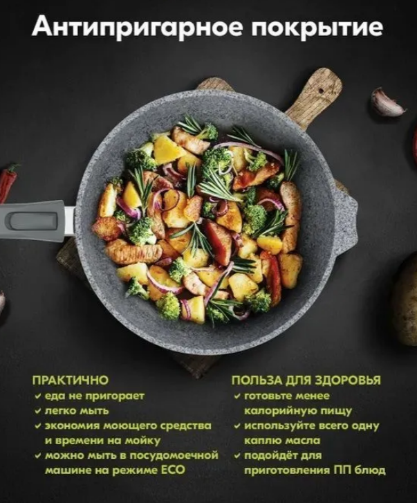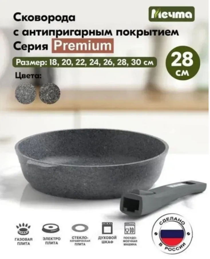 СохранитьСковорода Мечта Premium Grey 28см съемная ручка интересное: