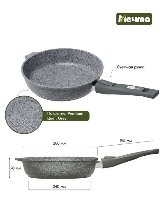 Купить Сковорода Мечта Premium Grey 28см съемная ручка