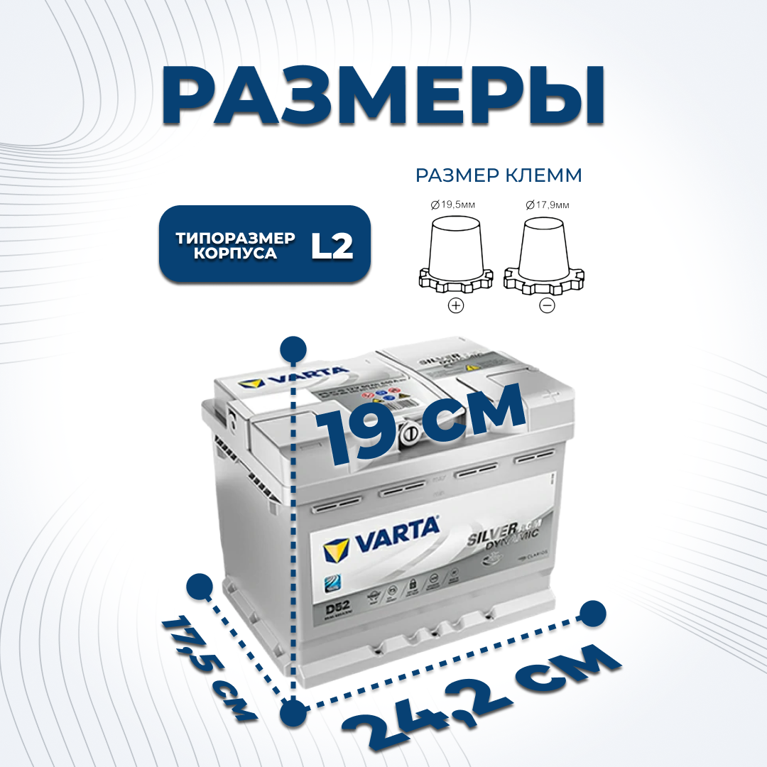 Аккумулятор Varta Silver Dynamic Agm 60 А/Ч 560 901 Обратная R En 680a 242x175x190 D52 560 901 068 D85 2 Varta арт. 560901068
