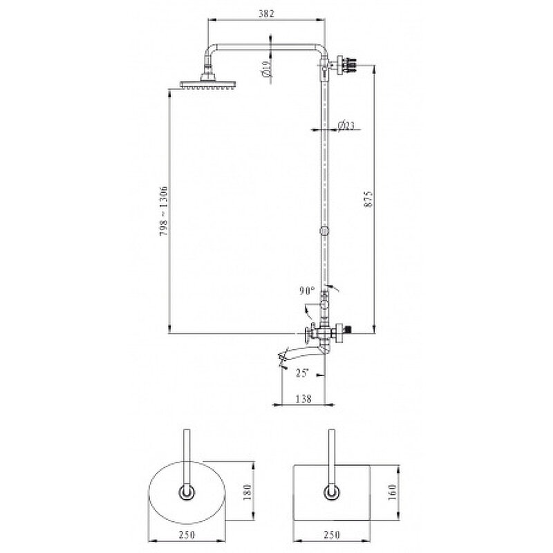 | Дополнительная информация | материал смесителя: латунь; высота стойки для душа: 1306 мм; длина излива: 138 мм; высота стойки 130 мм |