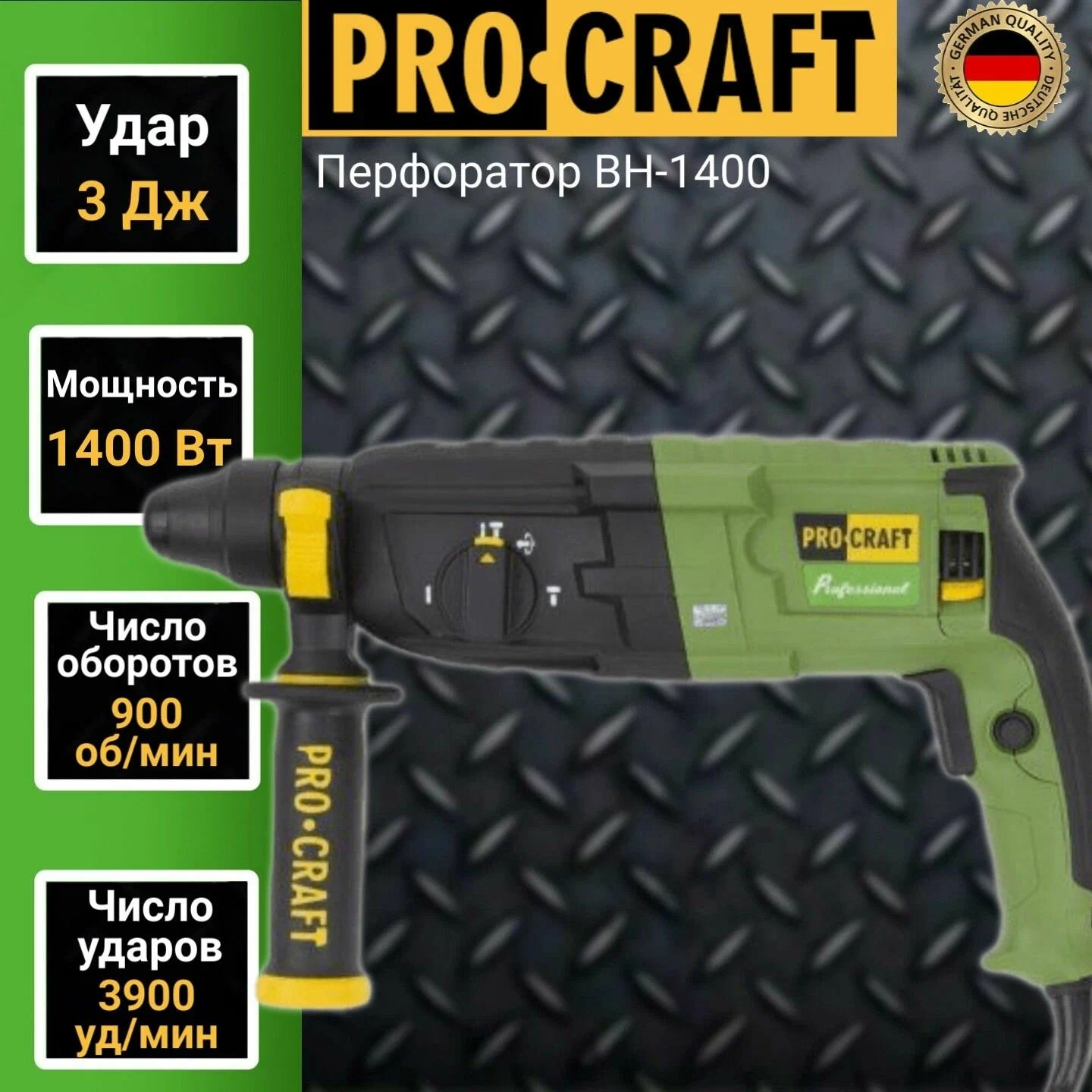 Перфоратор ProСraft BH 1400, патрон SDS, 3Дж, 3900уд/мин, 900об/мин, 1400Вт