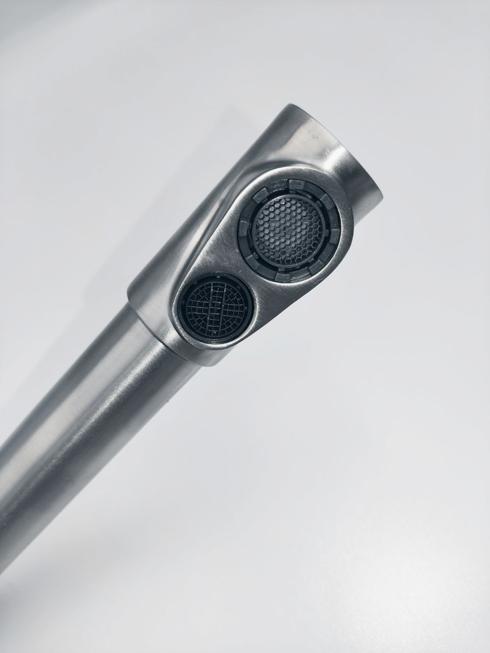 | Плюсы: | Выглядит хорошо, всё довольно качественно. Аэратор на гайке, выкручивается. Можно регулировать направление потока с помощью поворотной головки на конце излива. |