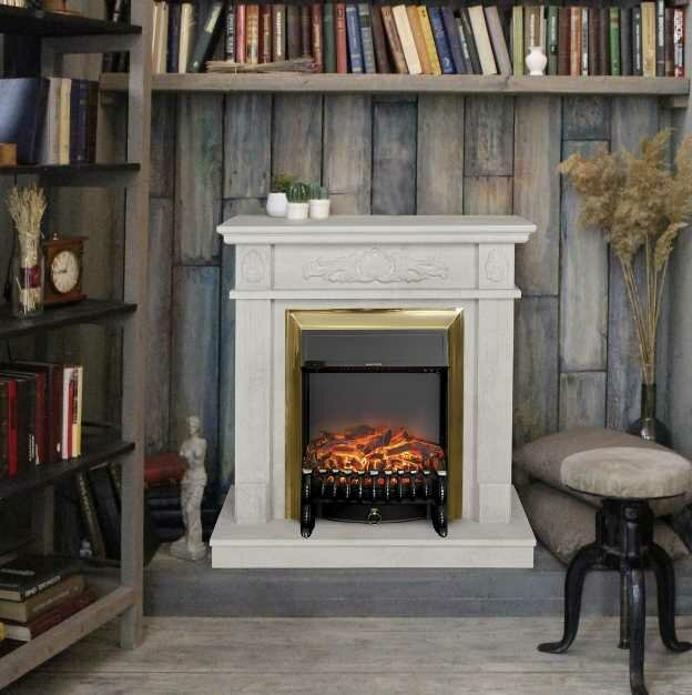 Купить Камин RealFlame Adelaida WT с очагом Fobos Lux Brass