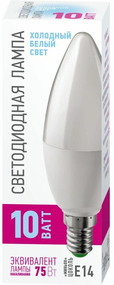 Лампа светодиодная онлайт 90 115, 10 Вт, свеча Е14, холодный свет 6500К, упаковка 10 шт.