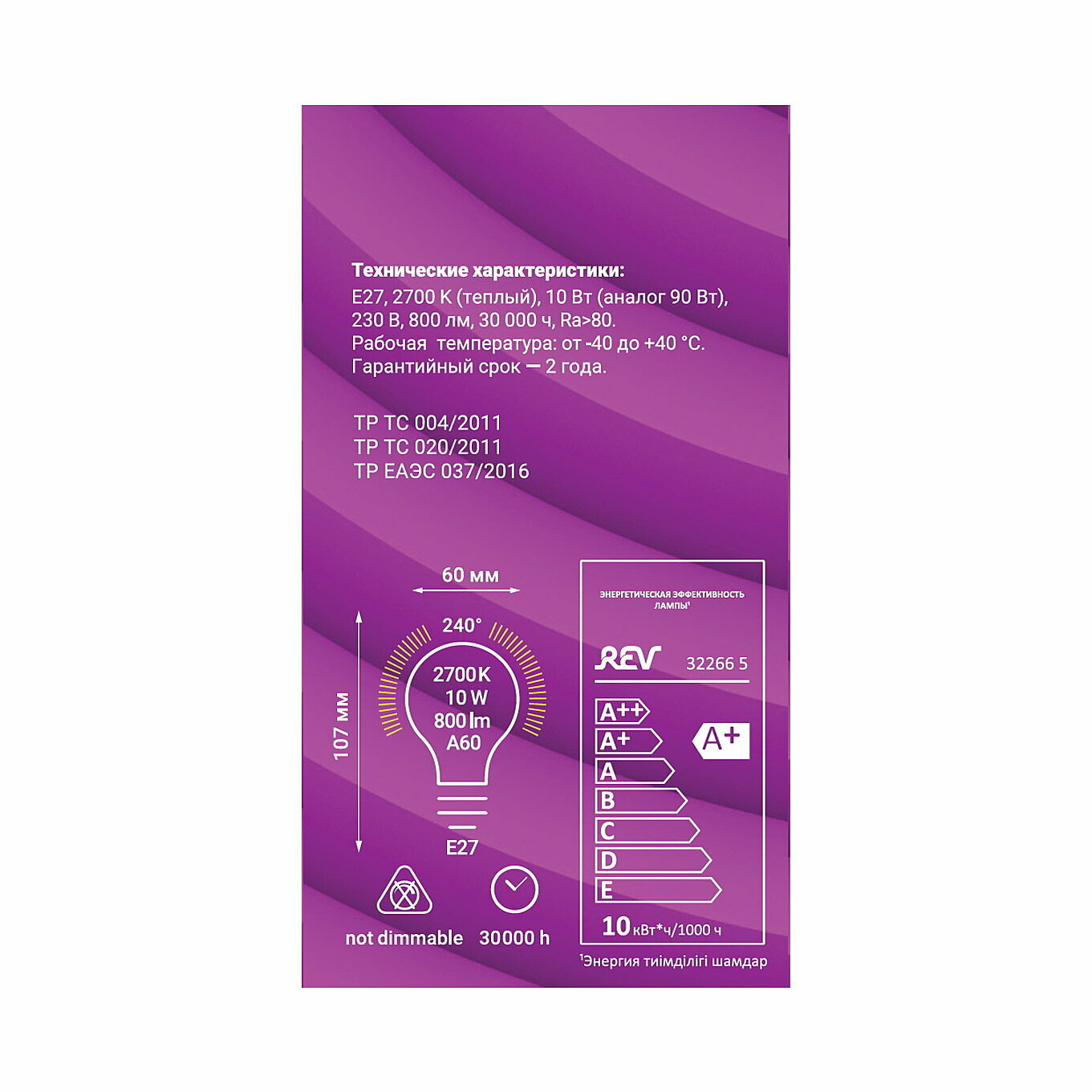 Светодиодная лампа LED A60 E27 10Вт 2700K REV 32266 5