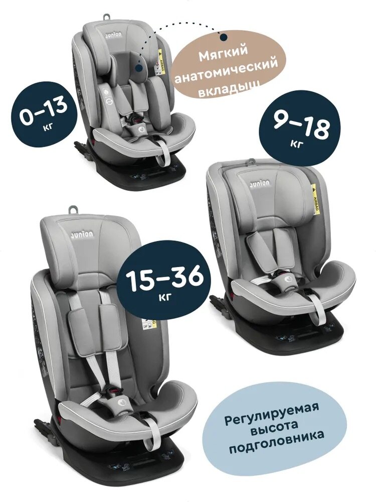 Автокресло JUNION Ebby группа 0+/1/2/3 (0-36 кг), 360°, Isofix, серый интересное: