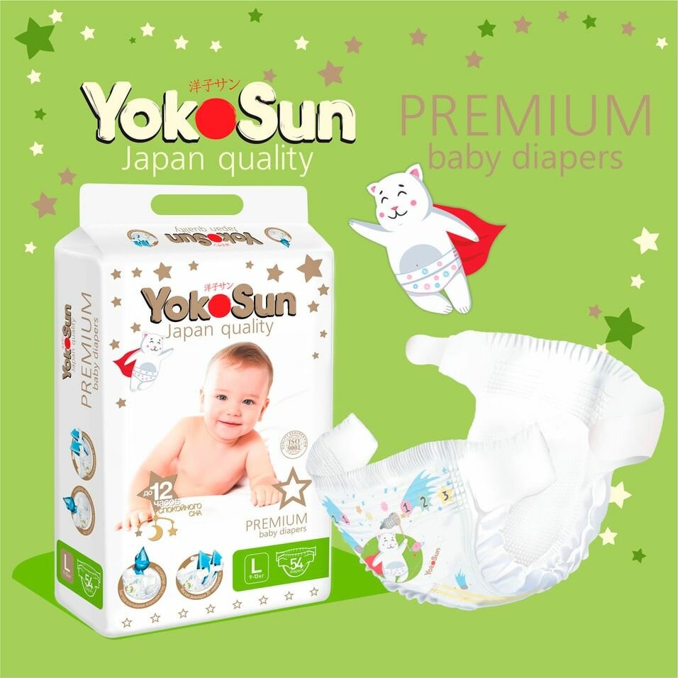 Купить Подгузники YokoSun Premium L 9-13кг 54шт х 3шт