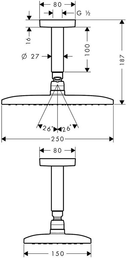 Верхний душ Hansgrohe PuraVida HG 27 383 000 250х150 мм, 1 режим, с потол. кр. 100 мм, 9 л/мин хром