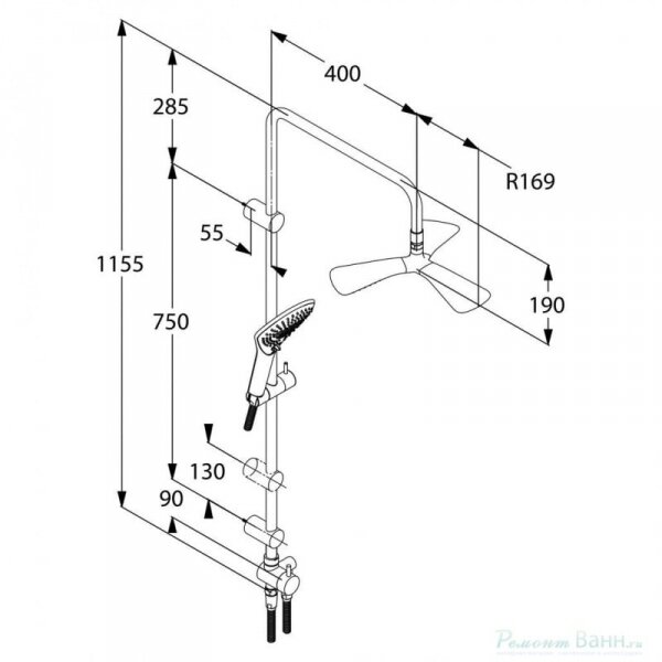 | Дополнительная информация | высота стойки для душа: 1290 мм; длина верхнего душа: 340 мм; ширина верхнего душа: 340 мм |