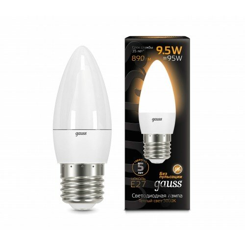 Лампа светодиодная Gauss 9.5Вт цок.:E27 шар 220B 3000K св.свеч.бел.теп. P45 (упак.:1шт) (105102110)