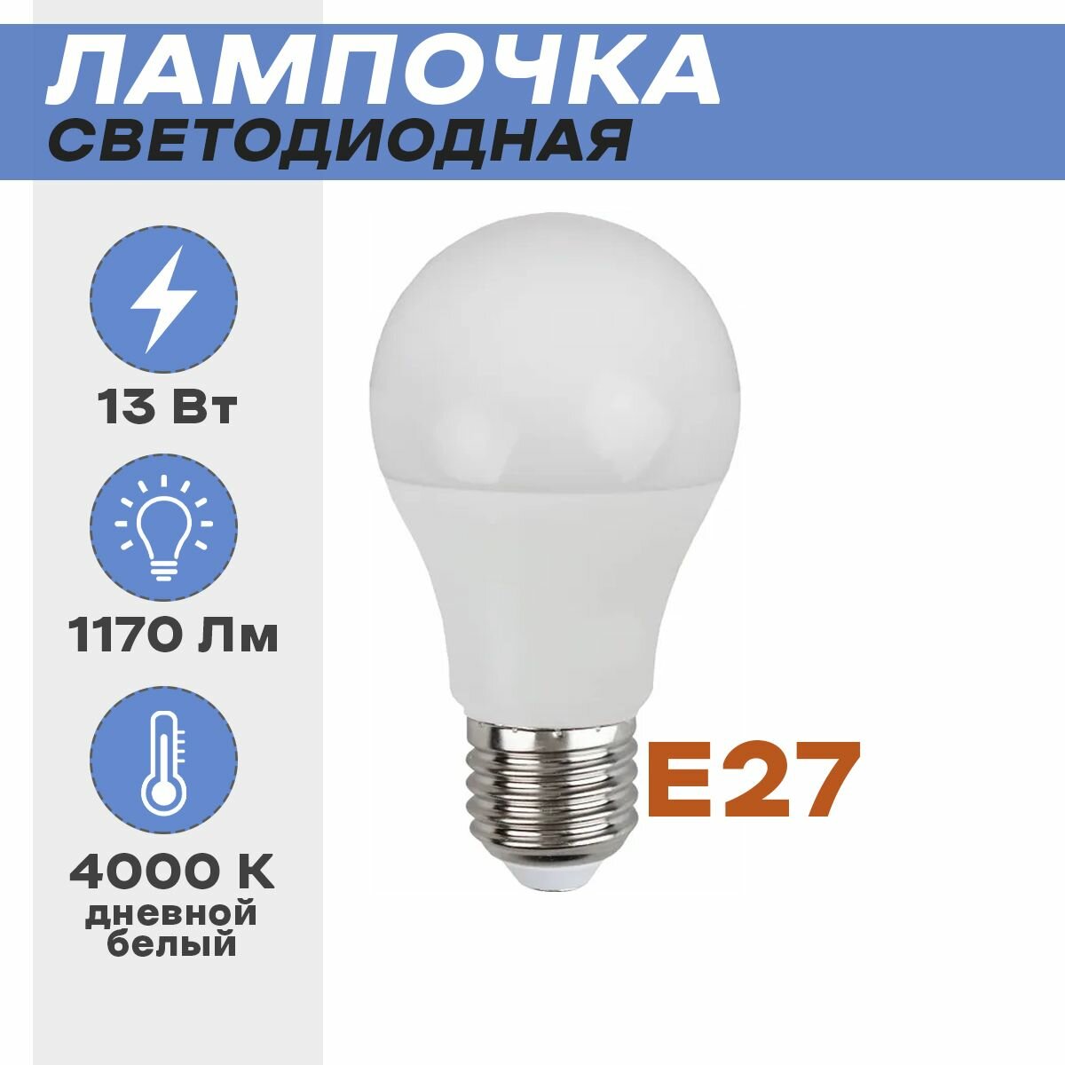 Лампа светодиодная LL-E-A60-13W-230-4K-E27 (груша, 13Вт, нейтр., Е27) Eurolux