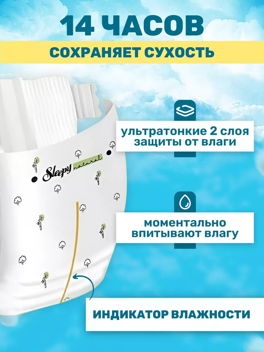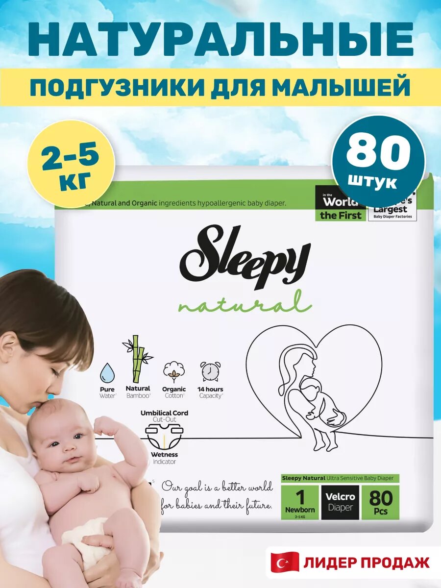 Памперсы Sleepy Natural NB 1, для новорожденных, 2-5 кг, 80 штук, белые
