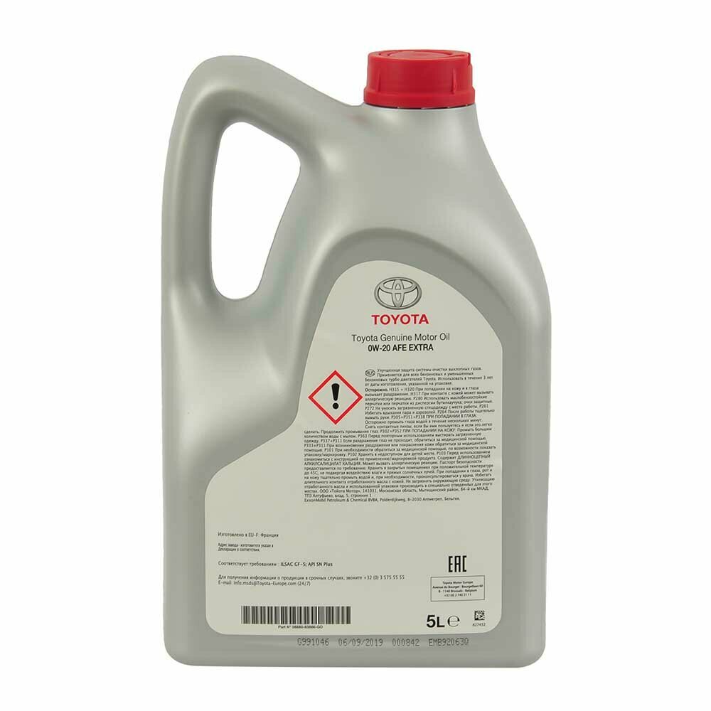 Оригинальное моторное масло Toyota ENGINE OIL ADVANCED FUEL ECONOMY EXTRA 0W-20 Синтетическое 5 л