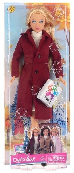 Кукла Модница 30 см / Кукла Defa Lucy в осеннем пальто с сумочкой 8419 / Модница в бордовом пальто