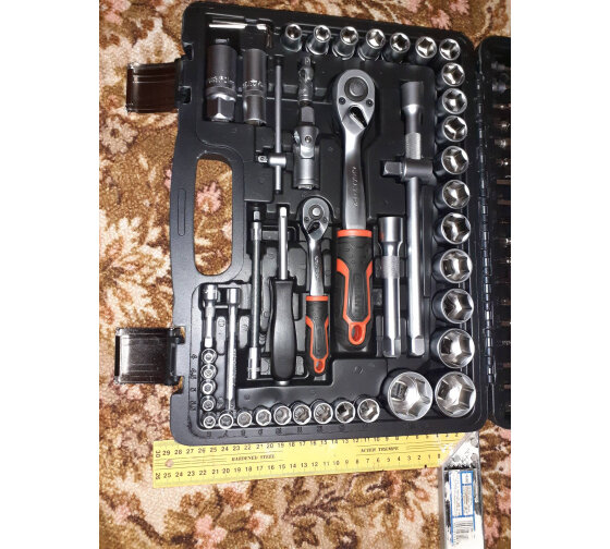 | Ручной инструмент подробно | трещотка 1/4"; удлинитель 1/4": 50, 100 мм; карданный шарнир 1/4"; трещотка 1/2"; удлинитель 1/2": 125, 250 мм; карданный шарнир 1/2" |