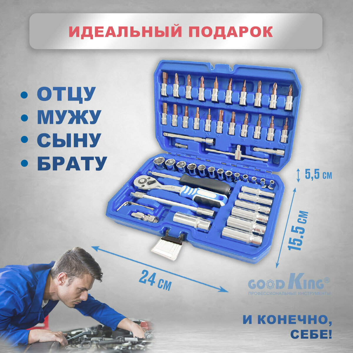 Набор инструментов GOODKING 53 предмета 1/4" трещотка B-10053