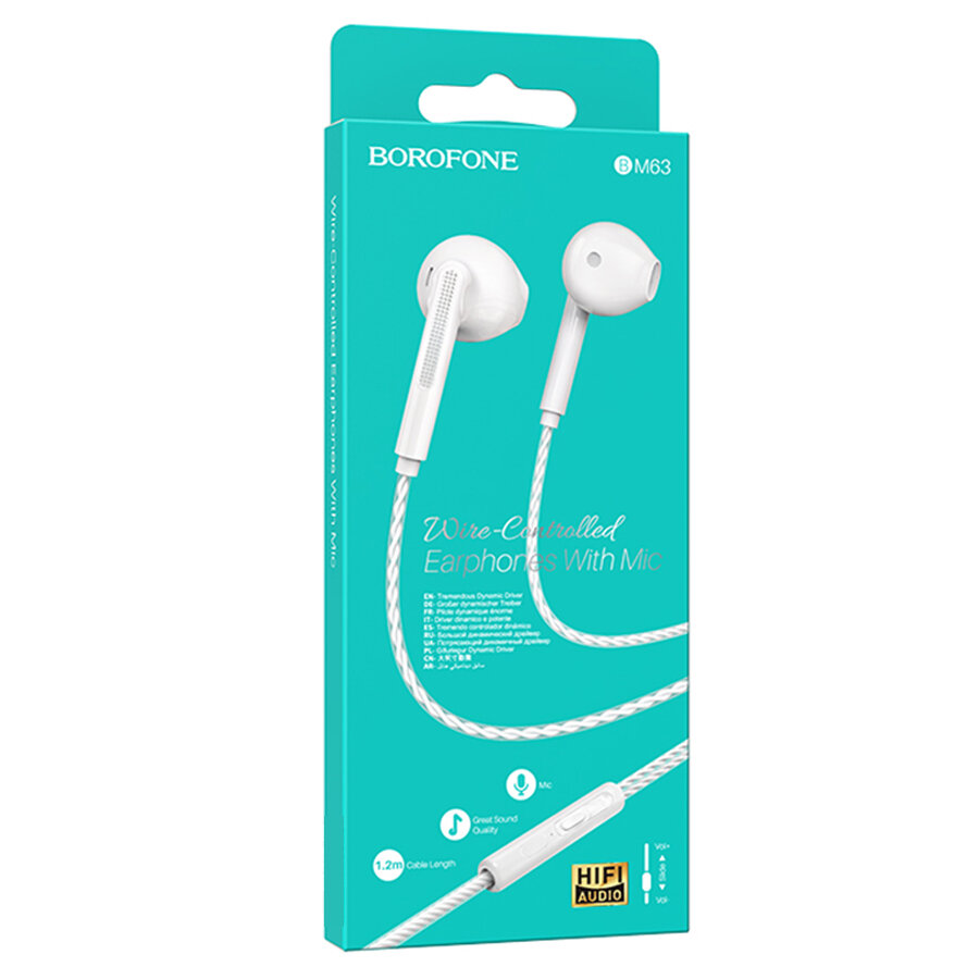 Наушники вкладыши AUX разъём с МК длина 1.2м Borofone BM63 White