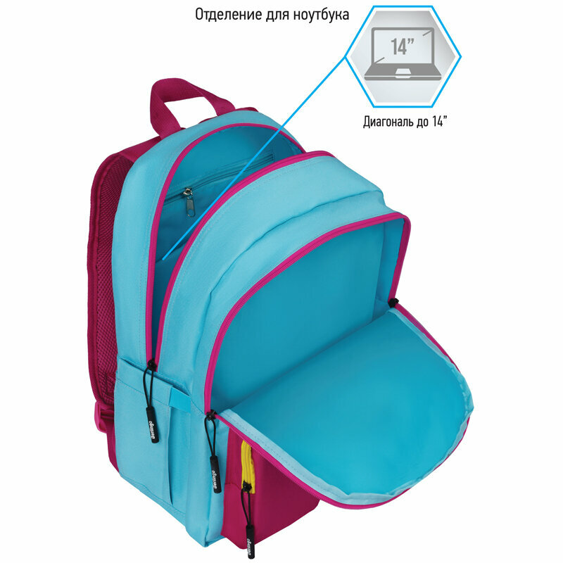 Рюкзак Berlingo Color blocks «Blue fuxia» 39×28×17см, 2 отделения, 4 кармана, уплотненная спинка