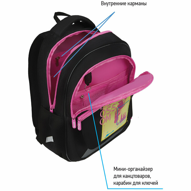Berlingo Рюкзак Bliss Blossom, RU08050, черный/розовый/желтый