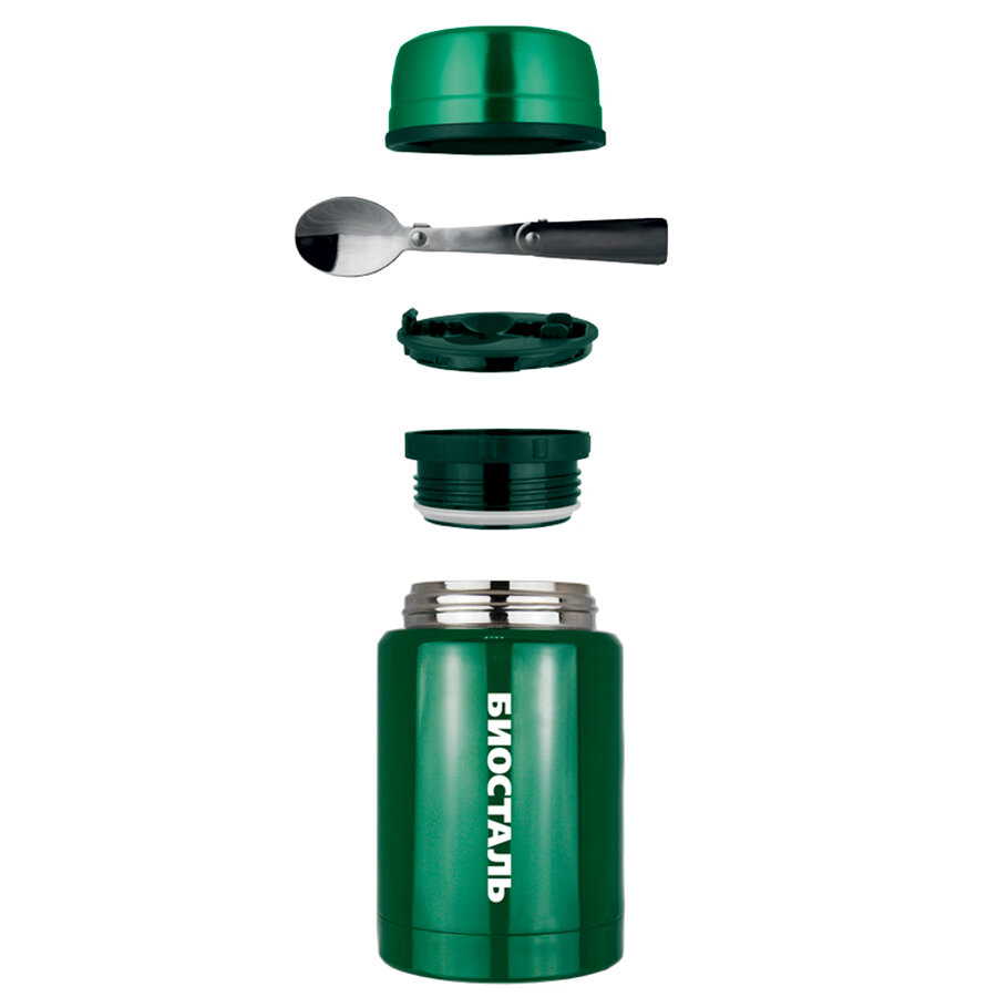 Термос для еды Biostal Охота (0,5 литра), с ложкой, зеленый