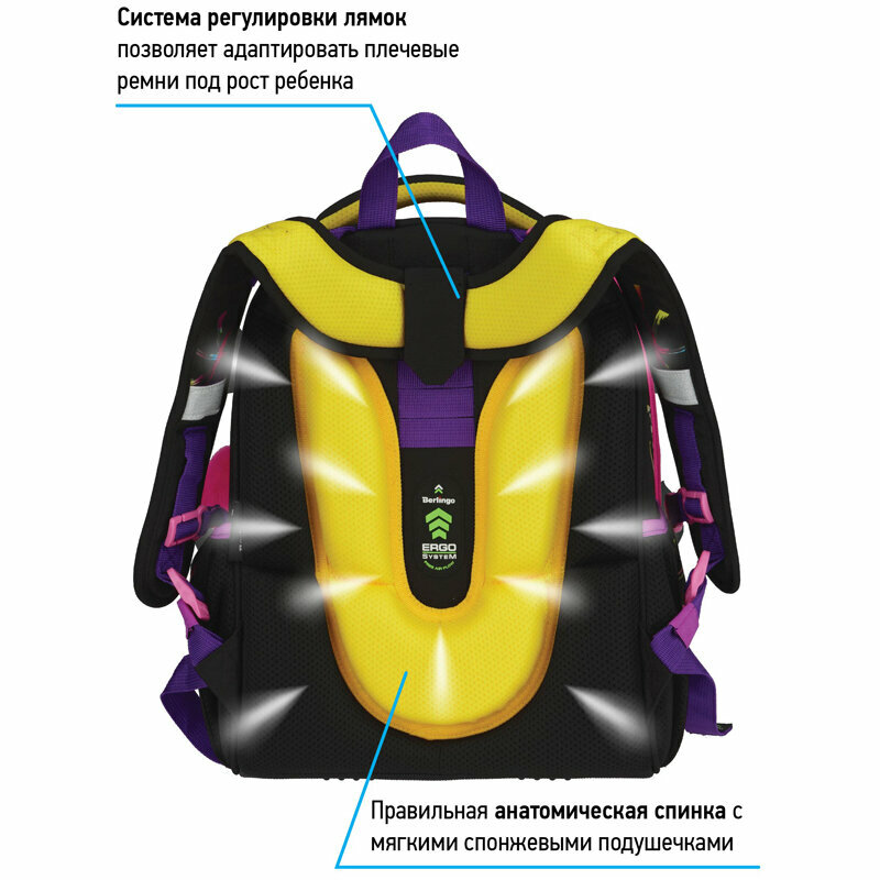 Berlingo Ранец Expert "Neon fashion", RU07106, черный/розовый/желтый