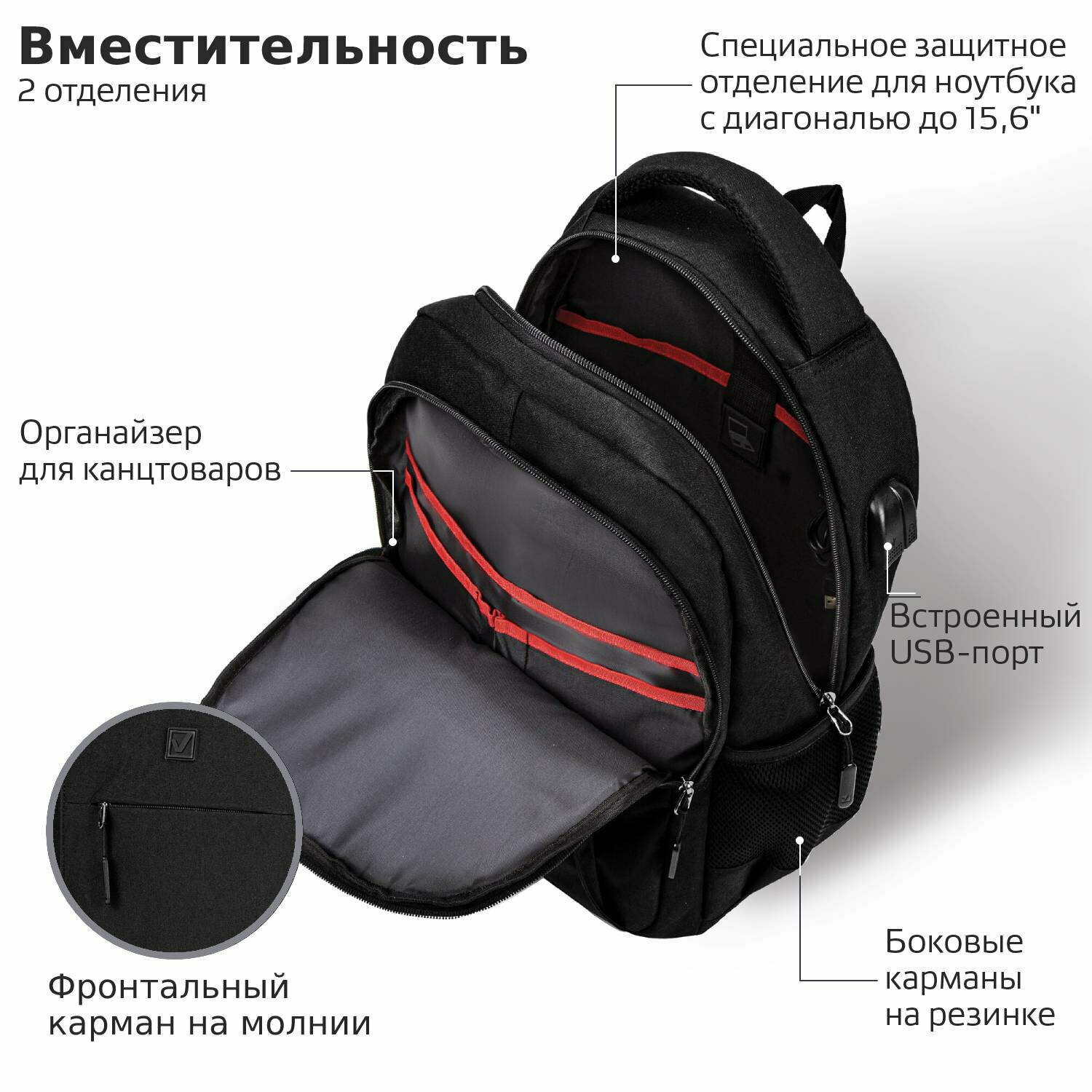 270798, Рюкзак BRAUBERG URBAN универсальный с отделением для ноутбука, USB-порт, "Kinetic", черный, 46х31х18 см, 270798