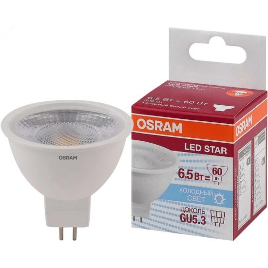 Светодиодная лампа OSRAM LED STAR, MR16, 6.5Вт, GU5.3, 500 Лм, 4000К, нейтральный белый свет 4058075480582