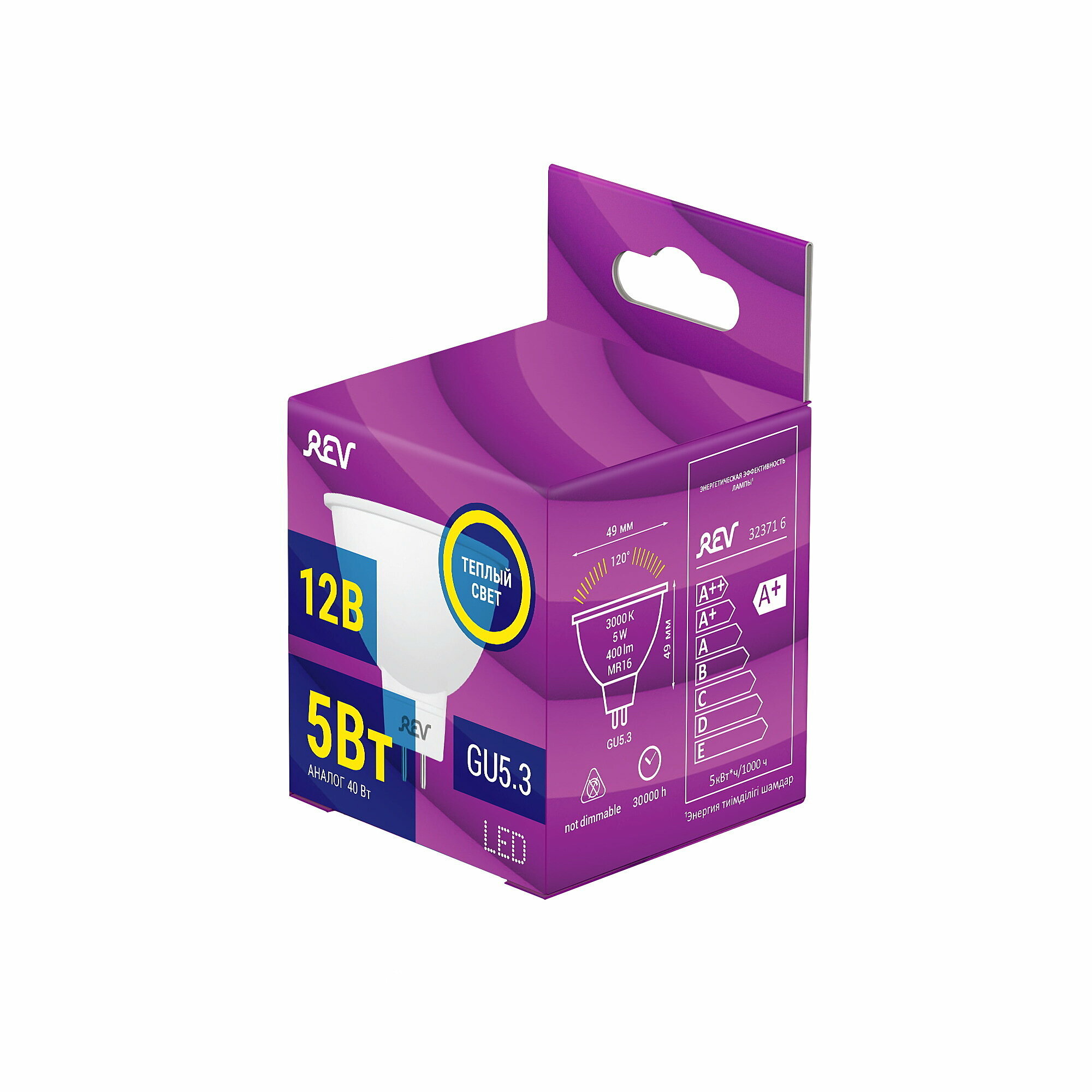 Светодиодная лампа REV GU 5.3 5W,3000K,теплый свет