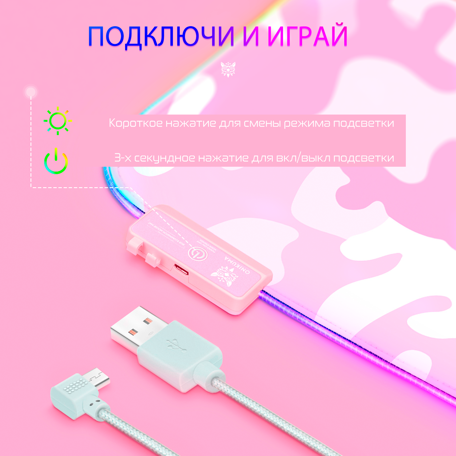 Коврик для мыши и клавиатуры ONIKUMA MP005 Military Field розовый с RGB подсветкой интересное: