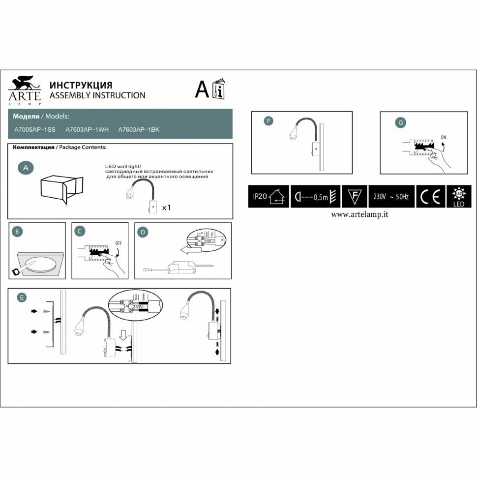 Arte Lamp A7603AP-1WH, LED, 3 Вт, 1 лампа
